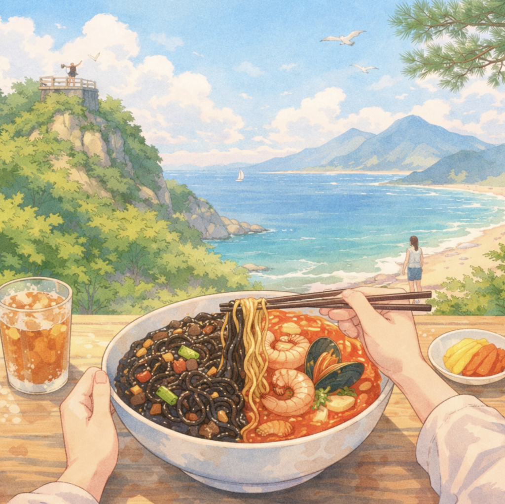짬짜면을 먹고.