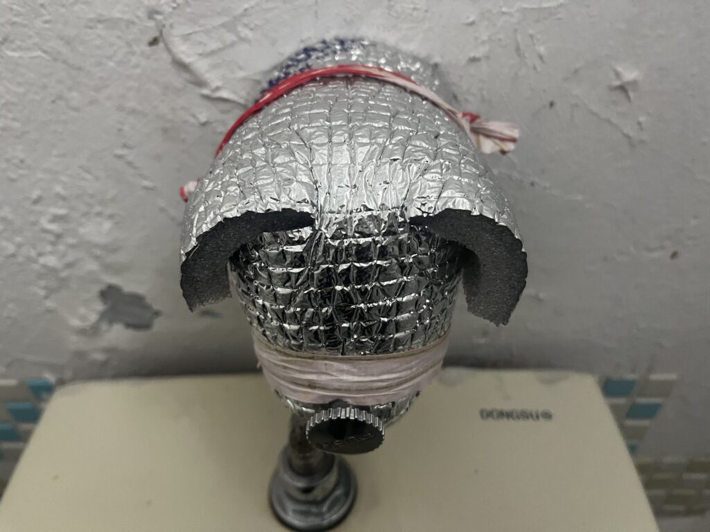 남자 화장실 물내리는 곳에 동파방지를 위해 옷을 입혀 두었는데 그냥 그모습이
